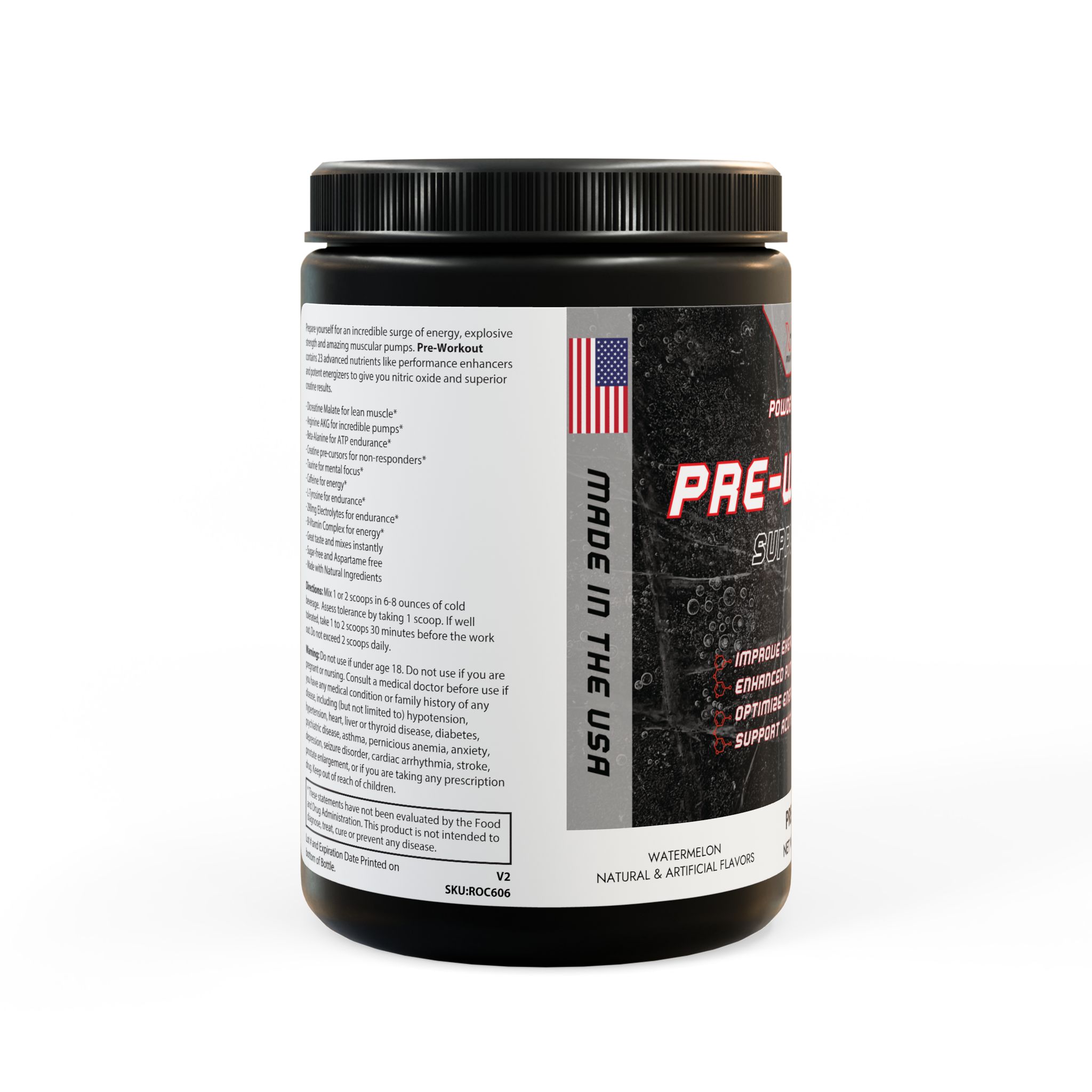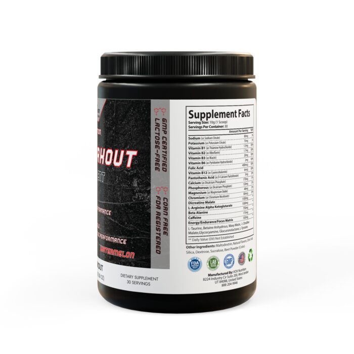 Elevate your fitness game with our refreshing Watermelon Pre-Workout Supplement, a powerhouse formula crafted to supercharge your exercise performance. Whether you’re hitting the gym, powering through cardio, or tackling high-intensity training, this deliciously juicy watermelon-flavored blend delivers sustained energy, razor-sharp focus, and enhanced endurance to help you push past limits and achieve real results. Packed in a convenient 300g (10.58oz) tub, it’s your go-to fuel for transforming ordinary workouts into extraordinary victories – all without the crash. Say goodbye to fatigue and hello to peak performance! 💪